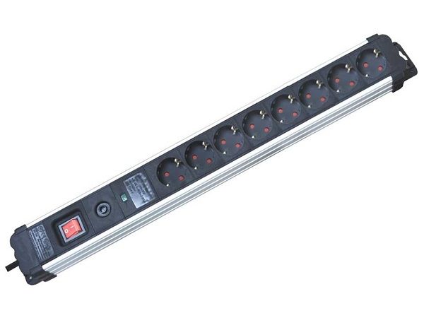 REGLETA INDUSTRIAL 8 TOMAS 1.5 METROS 3X1.5mm² MULTI-PROTEK INTERRUPTOR CON PROTECCION SOBRETENSION + SOBRECALENTAMIENTO SILVER