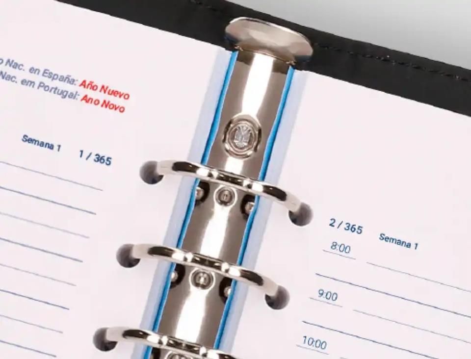 Encuadernación: Interior de anillas que permite añadir, quitar o reorganizar hojas según tus necesidades.