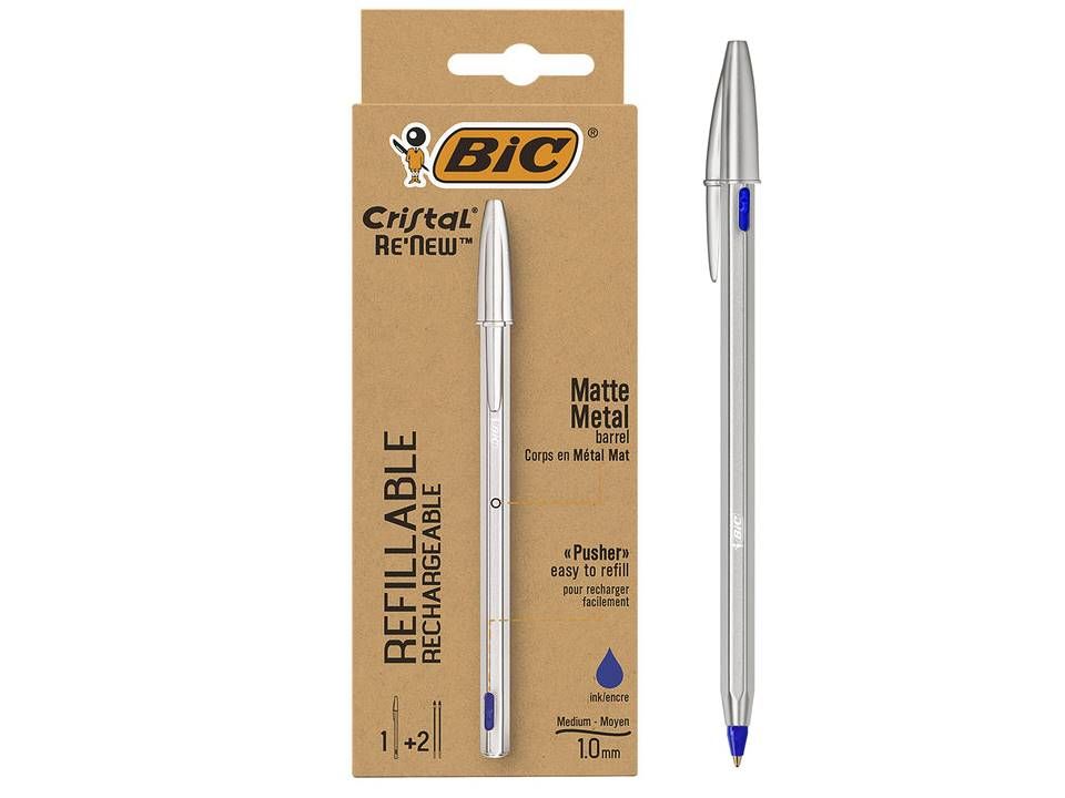 BOLÍGRAFO BIC METAL CRISTAL RE´NEW  AZUL + 2 REC