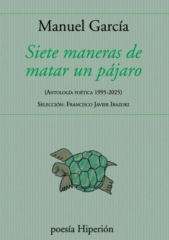 “Siete maneras de matar un pájaro, título de esta antología, comprende ciento una composiciones de once libros de poemas. Se añaden algunas páginas recientes que aún permanecían inéditas. Todas ellas contienen la pasión por una eufonía que viene del estudio de los autores clásicos, pero también de la entrega del escritor a los sonidos de un instrumento musical (la viola de gamba). Los textos en prosa combinan la fluidez con el uso de la precisión. El vocablo inusual se hace imprescindible para nombrar con exactitud la Naturaleza. Otro regalo. A menudo elegíaco, a veces con una leve capa irónica, siempre ético, Manuel García esquiva la pobreza de los sectarismos. Lo demuestra en cada una de sus reflexiones de hombre libre.” Francisco Javier Irazoki Manuel García (Huéscar, 1966) ha publicado una decena de libros de poesía, cuatro de ellos en Hiperión (De bares y de tumbas, La sexta cuerda, Es conveniente pasear al perro y Prado negro). Ha traducido la poesía francesa de Ángel Ganivet (Cancionero de Mascha Diakovsky) y ha versionado al poeta griego Jannis Ritsos (Epitafio, Cantares de la patria amarga), y a Charles Baudelaire (El Spleen de París, Hiperión). Ha hecho ediciones críticas de Pío Baroja (Canciones del suburbio), El abate Marchena (Polixena), Joaquín Romero Murube (Siete romances) y Juan Ramón Jiménez (Platero y yo). Y ha publicado dos novelas: Mañana cuando yo muera y La venus rota.